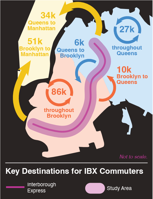 As the IBX report states, “With the exception of the G Crosstown subway line, New York City lacks high-frequency transit that connects the outer boroughs. This often results in difficult and circuitous trips from one outer borough to another.” Brooklyn and Queens have developed into major population and economic centers of their own in the decades since the subway’s original construction. Yet it remains served by a subway system focused on getting riders to and from Manhattan and a less-than-stellar bus network. A new transit option, not centered around service to Manhattan, would save riders in these two populous boroughs hours of time in their commutes.