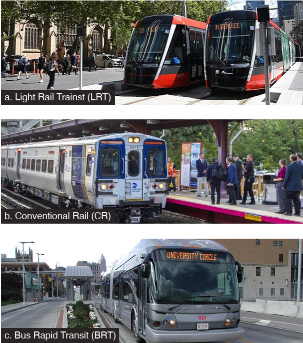 The IBX was first proposed in the 1990s, and the exact contours of what it would look like have shifted in the intervening period. In the MTA’s EIS report, it narrowed the shortlist of transit options considered to the three with the highest potential: Light Rail Transit (LRT), Commuter Rail (CR), and Bus Rapid Transit (BRT).